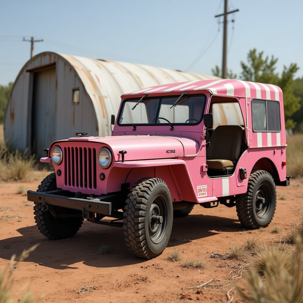 The CO was right. Bryan’s jeep did turn up – three days later. When he walked out of his hootch on the third morning, there it was. Only it was different now. Instead of the standard OD paint job, it was lipstick pink. Instead of an OD green canvas top it now sported a pink and white stripped surrey top, complete with a white fringe around the sides. Bryan couldn’t have been happier! While to some, driving a hot pink jeep with a pink and white surrey top in a war zone might be considered making oneself an automatic target, Bryan didn’t see it that way. As he saw it, it was the exact opposite. His one-of-a-kind M-151 jeep marked him as a non-combatant to anyone looking in his direction. It also had the added value that because it was so obvious, it would be difficult for anyone to steal since everyone turned their head when Bryan’s jeep passed by.